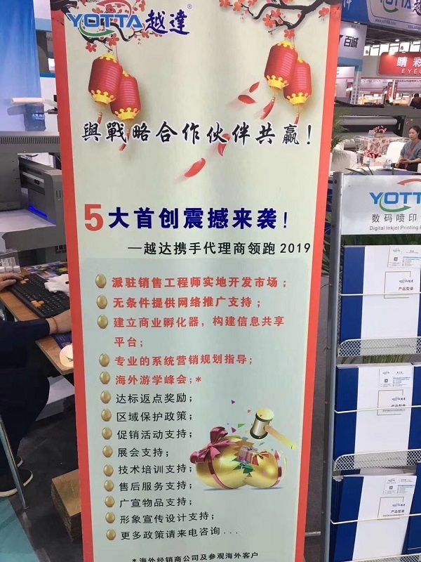 2019年3月29-31日在江西南昌綠地國際博覽中心召開2019南昌廣告標識及LED展覽會。展會立足強大的中國華中市場,致力于展示廣告標識與照明技術設備及前沿技術,為進一步推動江西及華中廣告標識照明產業的發展提供交流合作的絕佳平臺。此次展會雖然不是越達主打的,是我們的代理商南昌市居多彩科技有限公司參加的,但作為行業內的UV打印機廠家,即使是我們的代理商參展,我們也會提供人力物力支持,會有資深工程師前去調試機器,會派駐相應的有經驗的銷售人員去指導開發相應的市場。今年是越達誠招代理商力度最大的一年,而且各項支持力度也是想當大的。