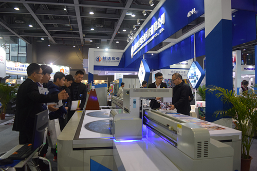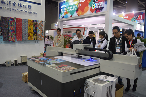 ? 越達彩印參加為期4天的第七屆培思(春季)廣州國際廣告標識展于昨日圓滿結束! 展會期間,來自各地參觀考察的朋友絡繹不絕的來到越達展館參觀,展位旁圍滿了參觀咨詢人員,現場觀看打樣,洽談業務,越達彩印UV打印機、UV噴繪機、紡織印花機、卷平一體機更是吸引了更多的客戶光臨咨詢與了解并達成訂單購買。
