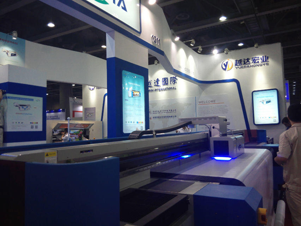 ? 廣州琶洲保利世貿博覽館舉辦的廣州國際網印工業數碼噴印展紡織品印花技術設備展于今日(11月17日)上午正式開展。越達彩印科技攜適用于裝飾裝修、廣告、包裝、紡織印花、皮革、個性創意禮品等等多個行業的印花噴繪設備正式亮相展會現場。