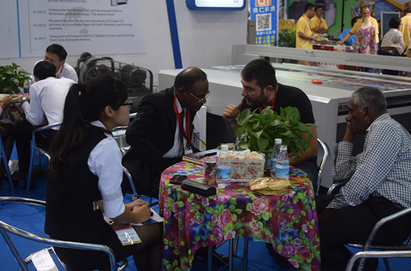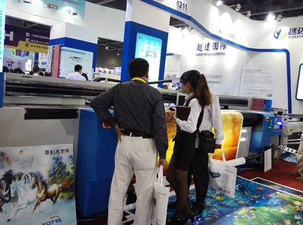 ? 昨日上午9:00展會一開始,便有很多朋友陸續來到越達展館參觀,大家一致對越達彩印UV平板打印機、紡織印花機、卷平一體機的強大功能,清晰逼真的打印效果贊不絕口!一直到下午6點閉館時候,仍有源源不斷的朋友前來參觀咨詢。