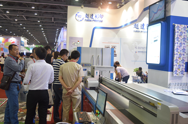 ? 越達彩印科技攜適用于裝飾裝修、廣告、包裝、紡織印花、皮革、個性創意禮品等等多個行業的印花噴繪設備參加為期3天的廣州國際網印工業數碼噴印展紡織品印花技術設備展將于今天下午4點圓滿結束!