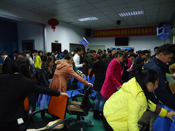 ? 大會(huì)中,越達(dá)彩印還對(duì)2014年所有員工的努力予以表?yè)P(yáng)和鼓勵(lì),并進(jìn)行公平公正的無(wú)記名投票選舉出年度優(yōu)秀員工。最后,每個(gè)部門(mén)選舉出一到兩個(gè)優(yōu)秀員工予以獎(jiǎng)勵(lì)。大會(huì)最后,公司對(duì)大家新一年的工作寄予期望,大會(huì)在一片歡聲笑語(yǔ)中圓滿結(jié)束!