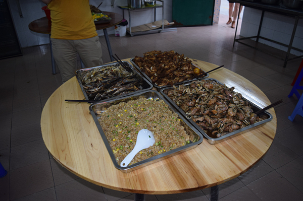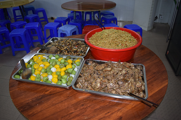 看一下都有什么好吃的?水果飲料、豐富的菜肴。