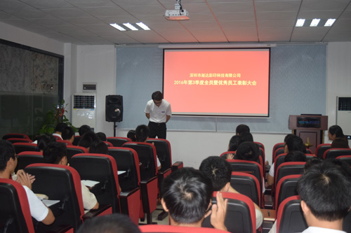 ? 昨晚(10月14日 周五)越達宏業(yè)科技召開了2016年第三季度優(yōu)秀員工表彰大會,此次優(yōu)秀員工表彰大會是在新建的多媒體會議室舉行,新建的會議室寬敞明亮、高端舒適、大家氣氛愉悅,越達數(shù)百精英代表匯聚一堂,共享喜悅。?