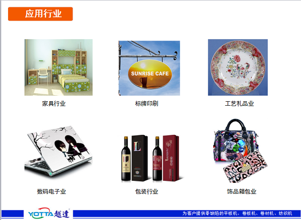 ? ? ? ?首先確定我們的需求,根據(jù)我們所應用的行業(yè)來選擇合適的機型,越達彩印產(chǎn)品線豐富,能提供uv平板打印機、UV卷材打印機、UV卷平一體機、高溫彩釉玻璃機等等一系列產(chǎn)品,滿足高強度高精度客戶需求。